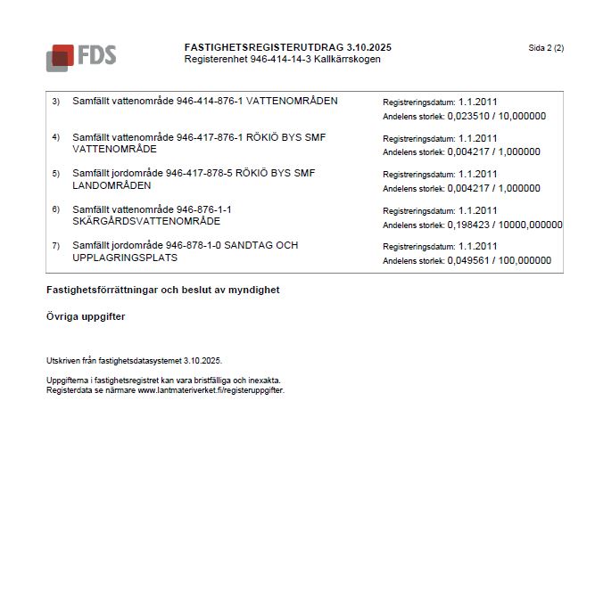 Skriftliga anbud lämnas senast 28.10.2025 till Kustens Fastighetsförmedling.