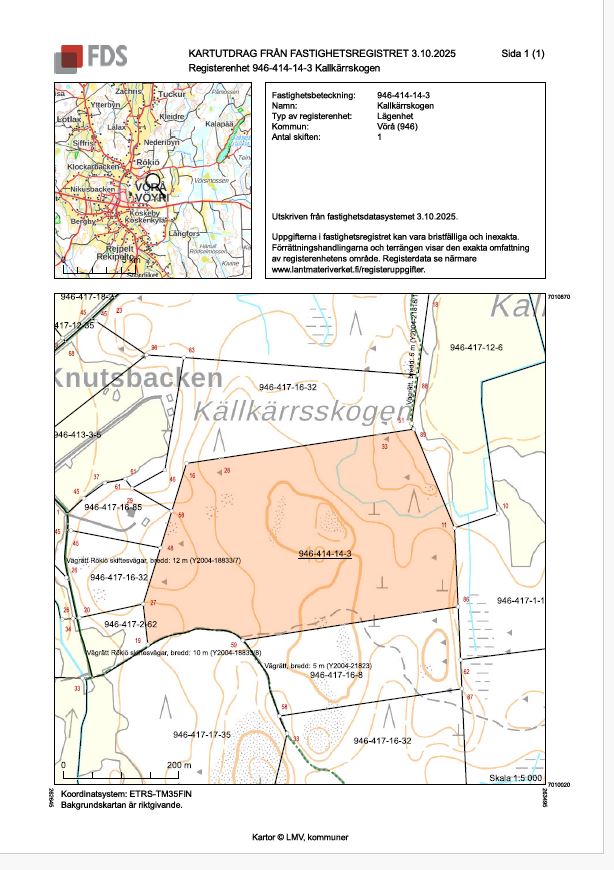 Till salu ett skogsskifte om totalt 15,3 ha, beläget i Vörå, Rökiö, Kallkärrskogen.