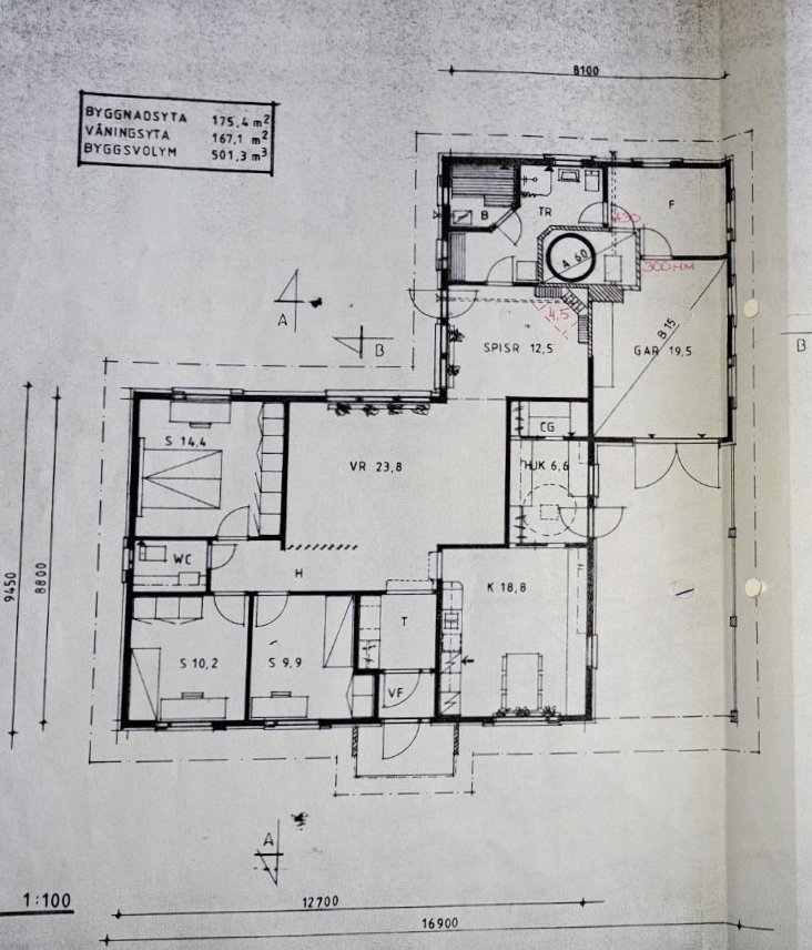 Huset är byggt 1988 av Simons Elementhus och har en vacker Mexi-tegelfasad. Bostaden omfattar fem rum och kök med tre sovrum, bastu, hjälpkök, teknikrum, förråd och garage. Bostadsytan är 138 m² och den totala våningsytan 167 m².
