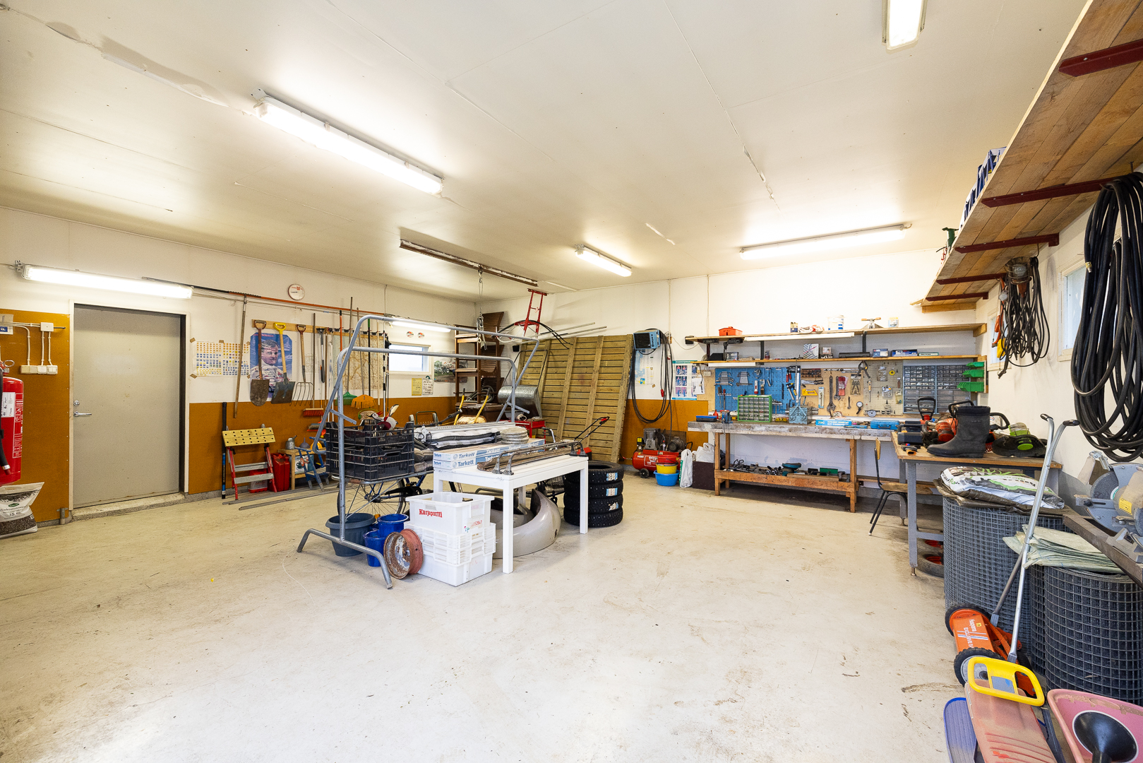 Tomten omfattar 5 475 m² och består av en plan gräsyta med mindre planteringar och möjlighet för odling. På tomten finns dessutom ett fristående dubbelgarage om cirka 56 m². Fastigheten har kommunal vattenanslutning, eget avloppssystem, el- och fiberanslutning.