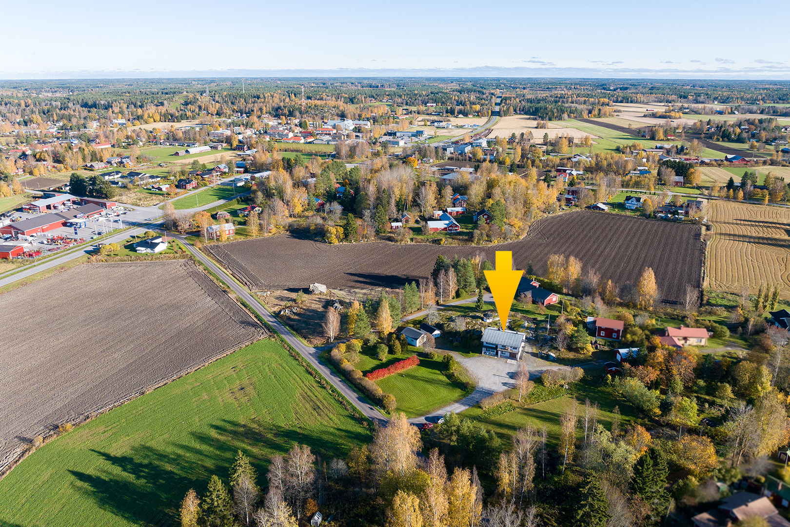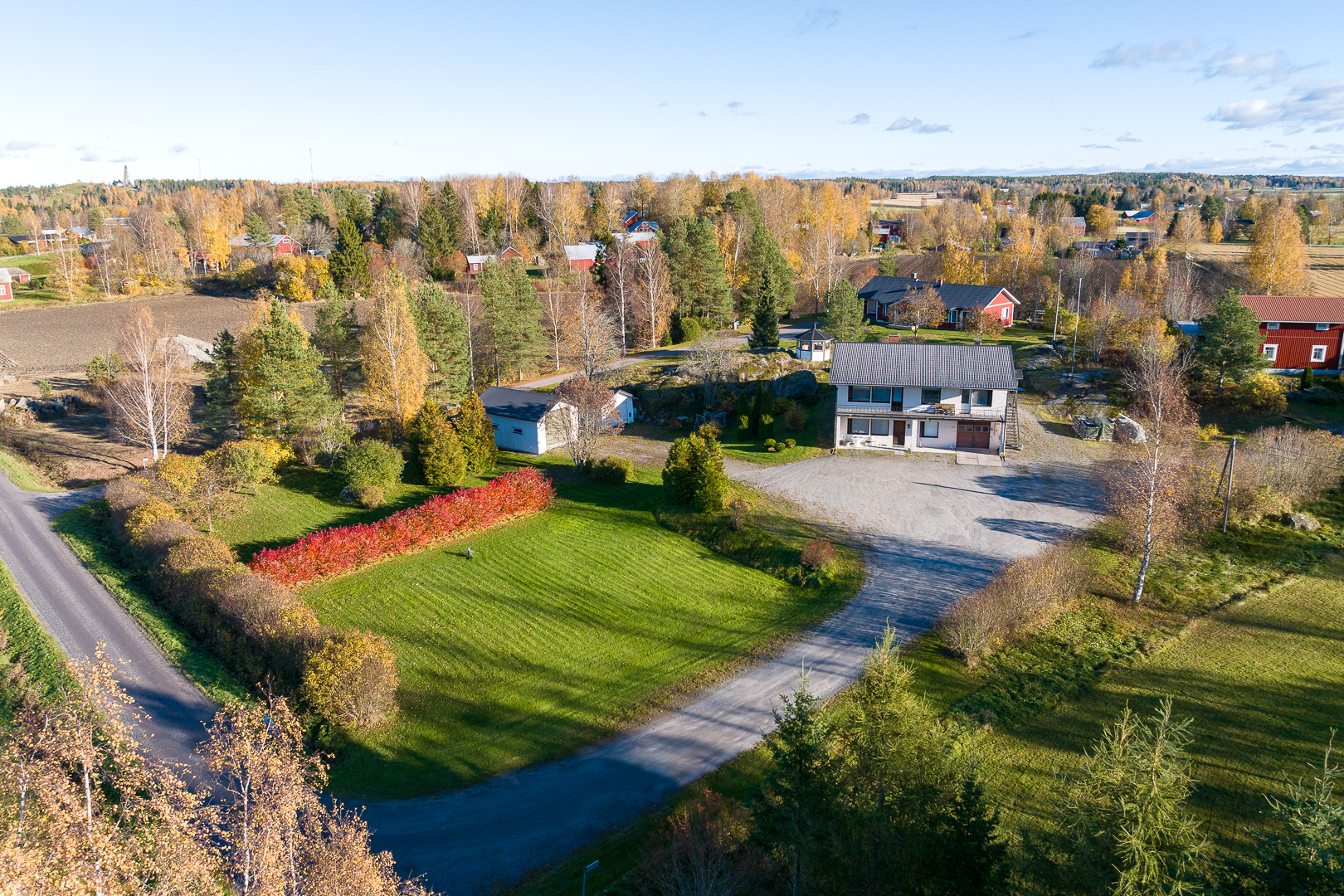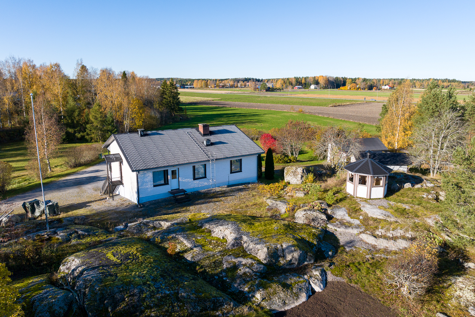 Fastigheten ligger på en 5 200 m² stor tomt med bra gårdsplan och två ekonomibyggnader.