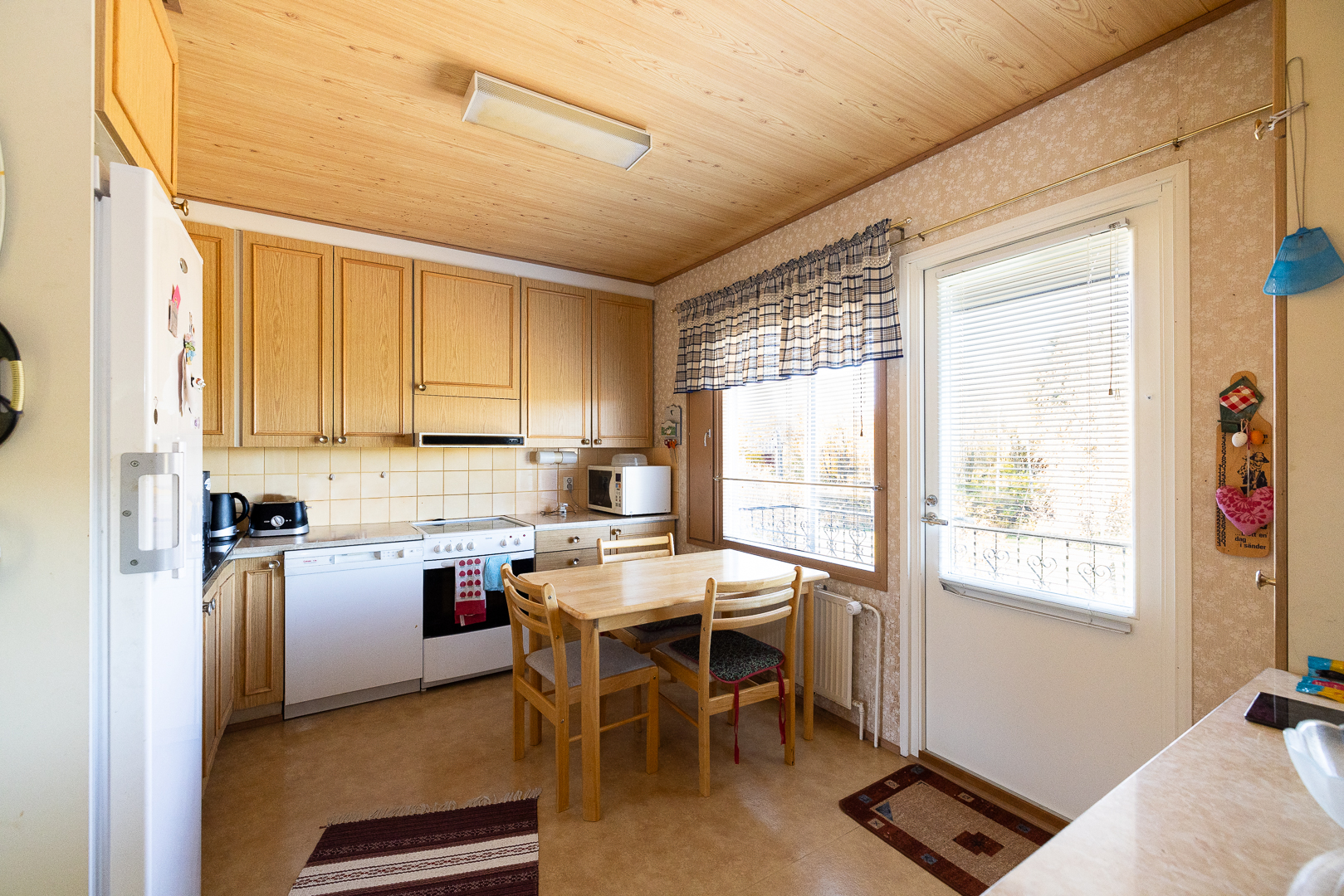 Planlösningen är praktisk med de flesta bostadsutrymmen på övre plan: tre sovrum, vardagsrum med utgång till balkong, kök med separat matplats samt wc och badrum.