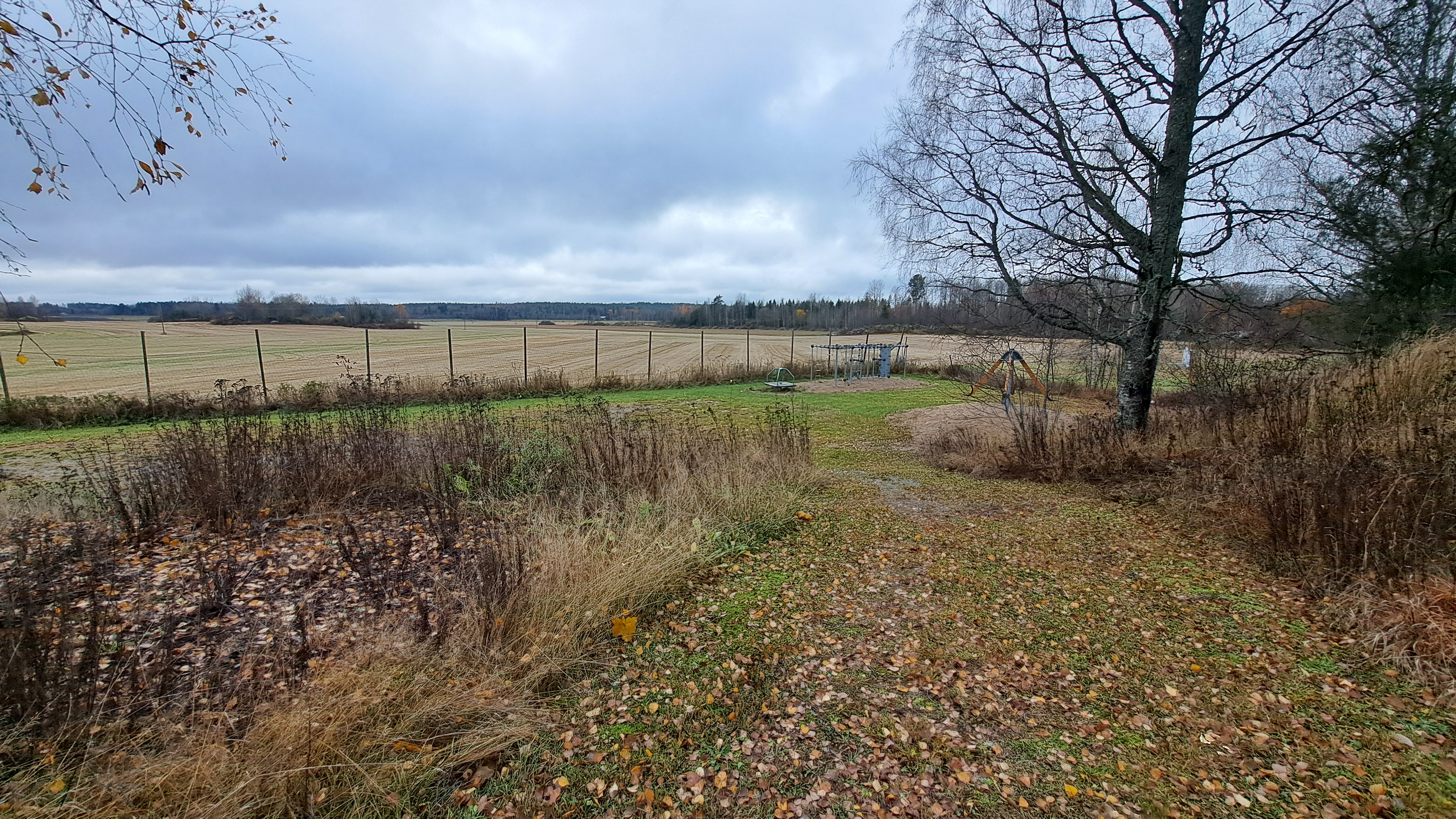 Sammanlagd tomtareal ca 9 200 m² med gräsytor, lekplats och parkeringsmöjligheter. Lugnt läge med öppen utsikt över fält och skogsbryn.