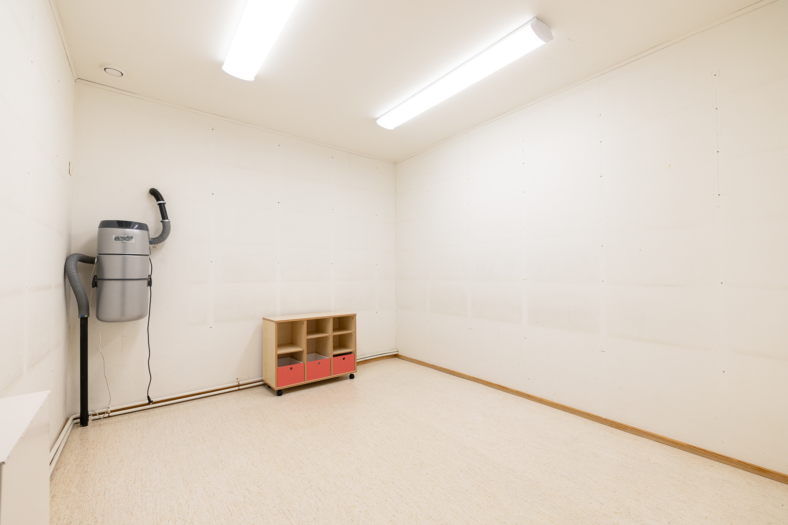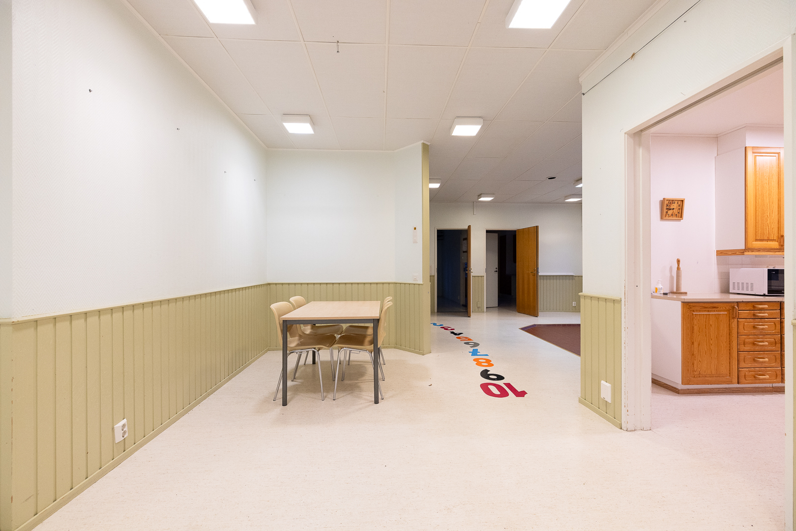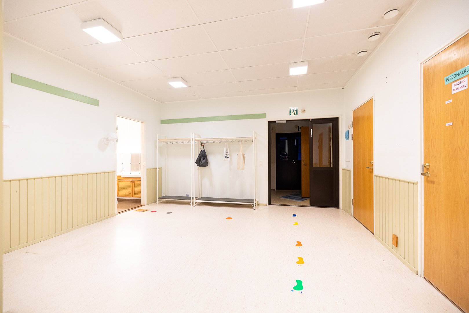 Lokalerna inrymmer bland annat allrum/lekrum, kök, kontor, flera toaletter, personalutrymmen, förråd, teknikrum samt separat gårdslagerbyggnad.