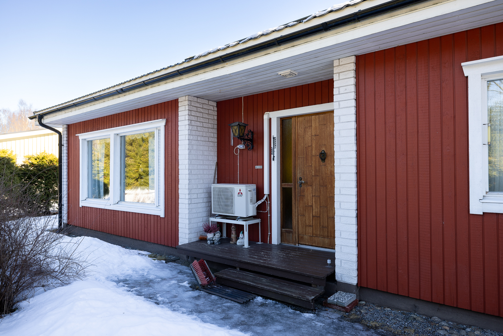 Läget är lugnt och trivsamt. Bara 1,5 km från Kvevlax centrum med skola, daghem och butiker, bekvämt med gångbana och gatubelysning.