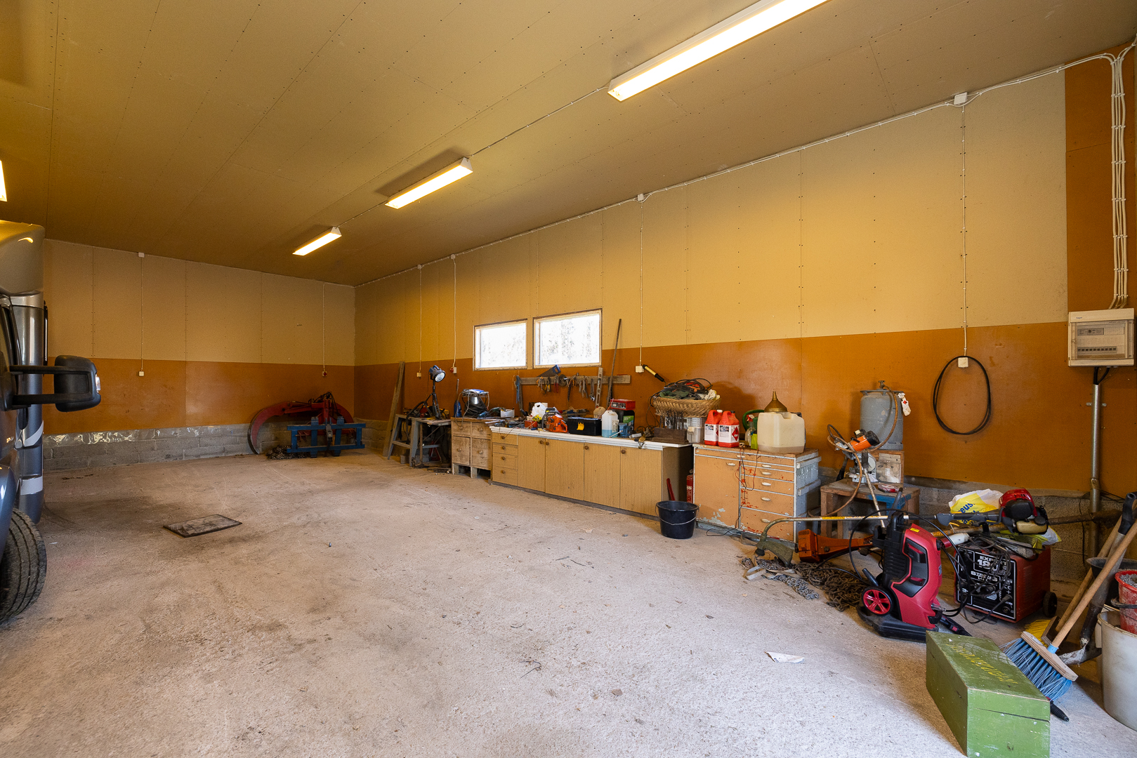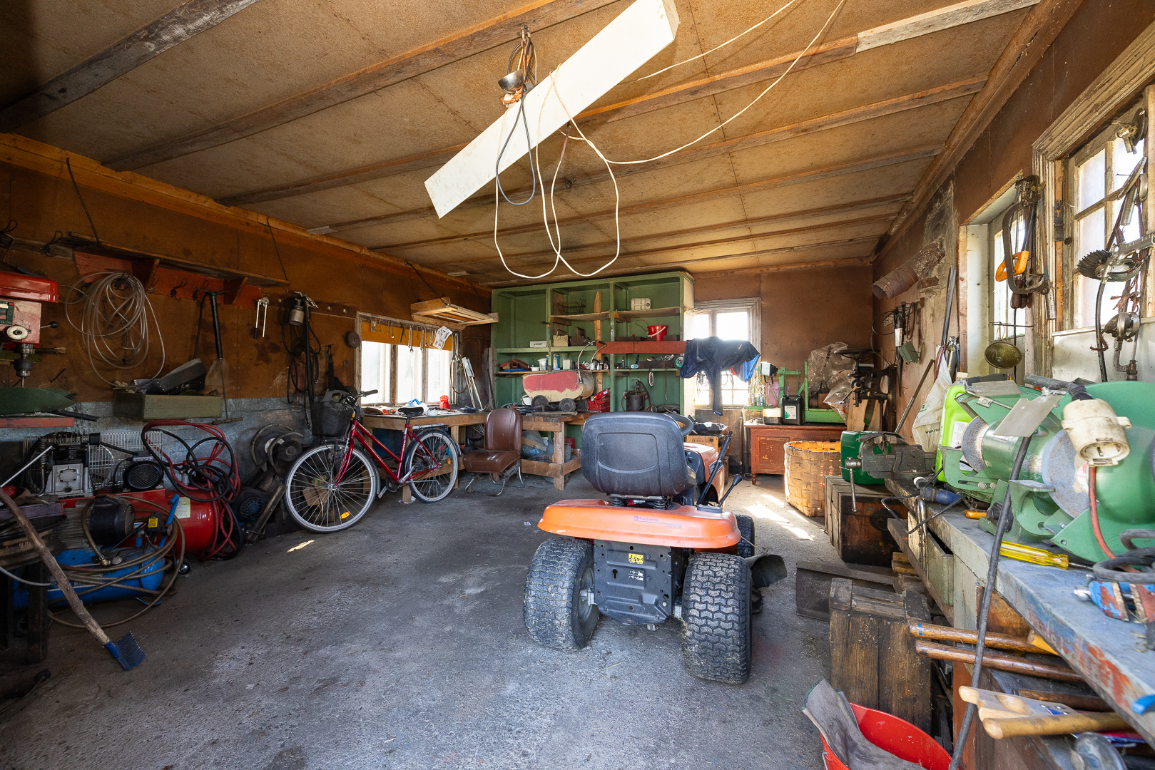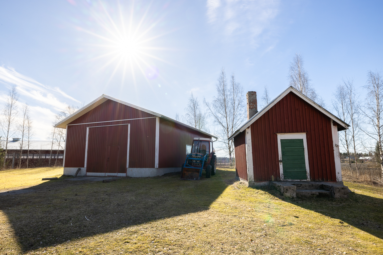 På fastigheten finns flera ekonomibyggnader i varierande storlek och skick. En större isolerad verkstad med en våningsyta om 96 m² erbjuder goda möjligheter för maskinförvaring, verkstad eller annan verksamhet. Hallen är byggd 1999, har en takhöjd om 3,65 meter samt dörrhöjd om 3,40 meter. Därtill finns mindre byggnader såsom bodar och förråd.