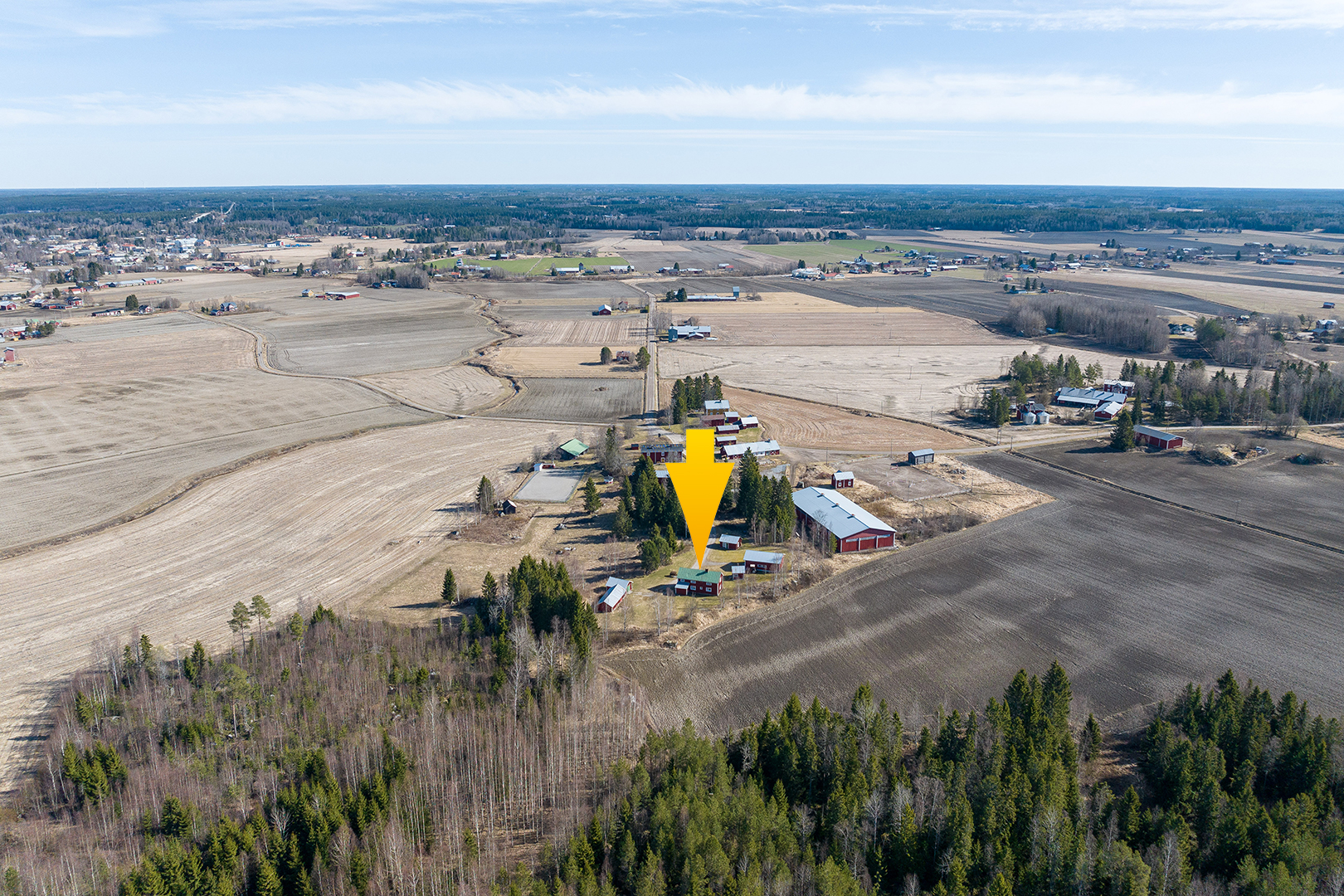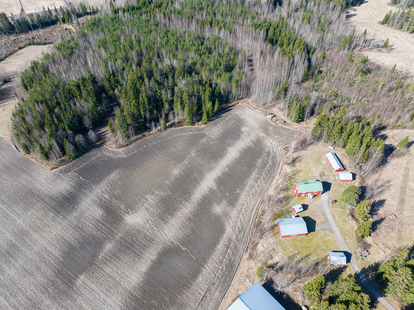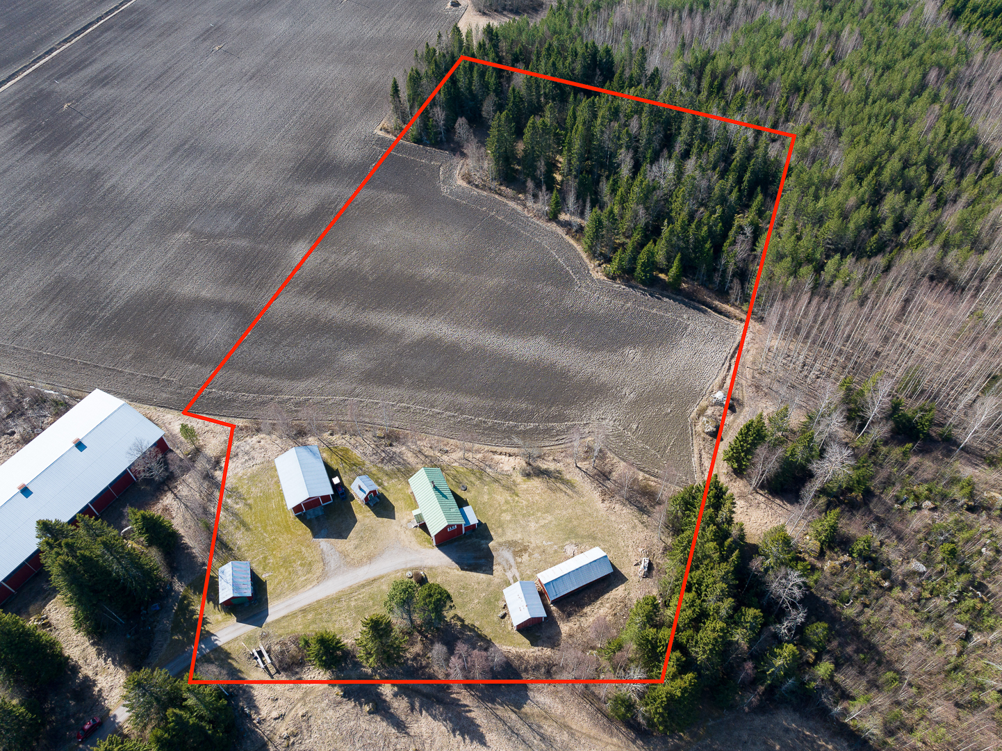 Tomten omfattar 2,55 ha och består av gårdsplan, åkermark om ca 1 ha samt skogsområde om ca 1 ha, vilket skapar en naturnära och avskild miljö.