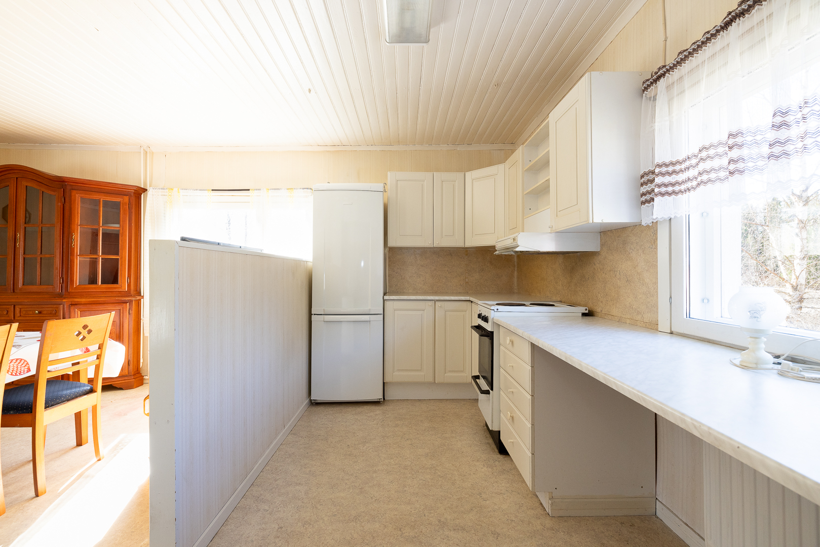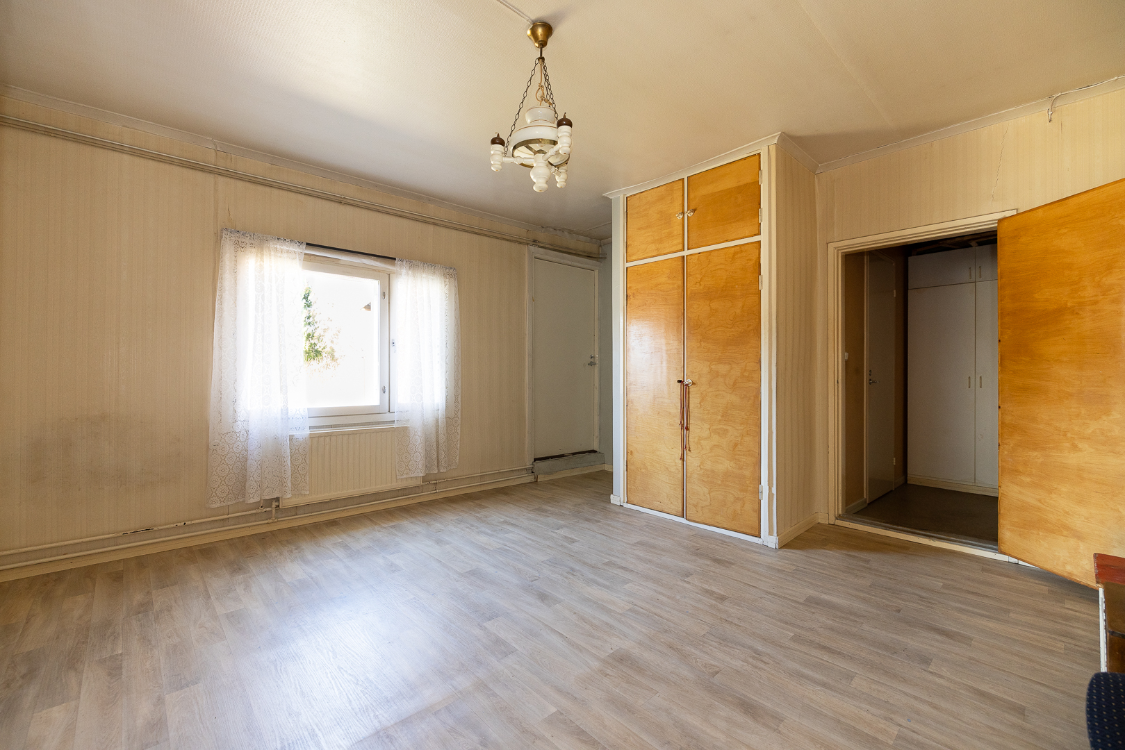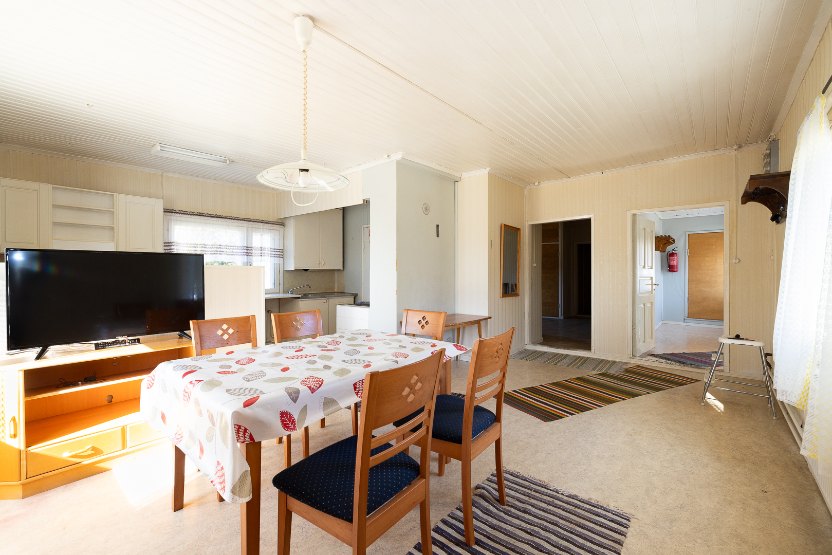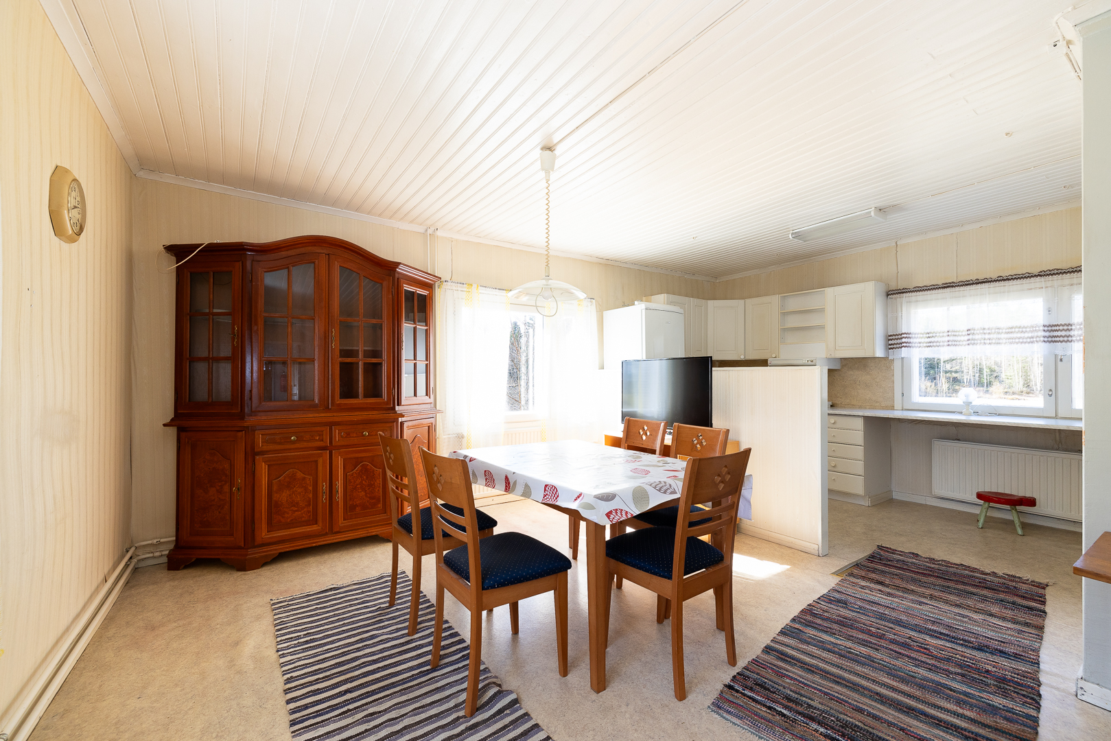 Planlösningen är traditionell där nedervåningen omfattar ett rum samt stugkök. Övervåningen rymmer tre rum som kan anpassas efter behov. Bostadsytan uppgår till cirka 120 m², den totala våningsytan till cirka 150 m² och byggytan är 84 m². Bostaden är i behov av renovering och säljs som renoveringsobjekt.