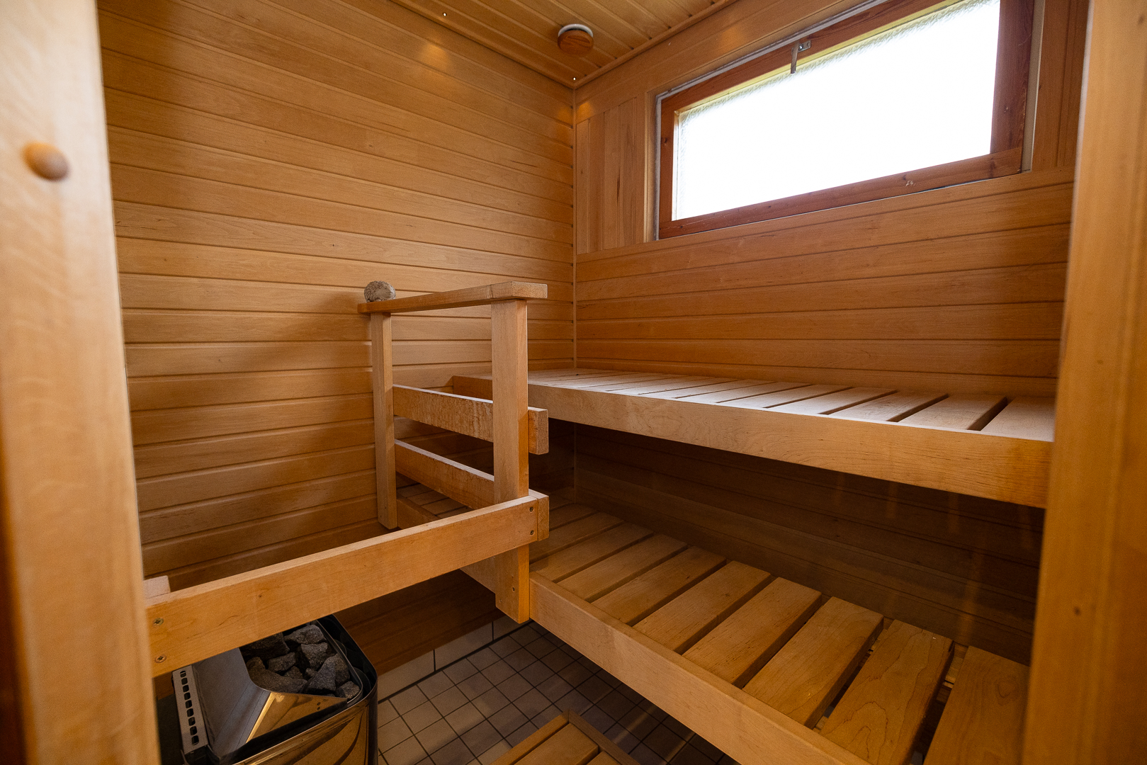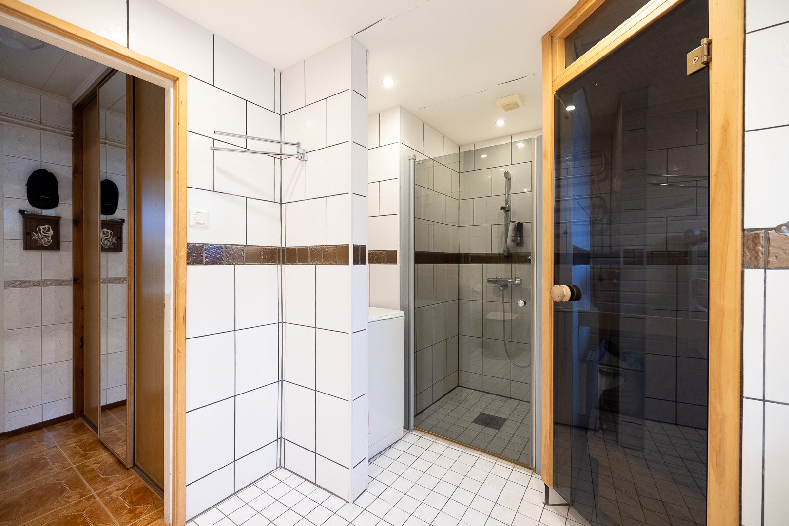 Vardagsrum, kök, tre sovrum, badrum, bastu (renoverade 2002), wc, hall och förrådsutrymmen. Köket renoverat 2001. Garage med förråd.