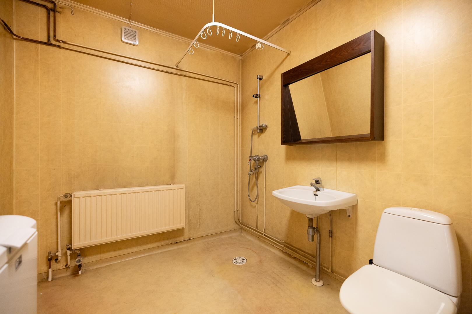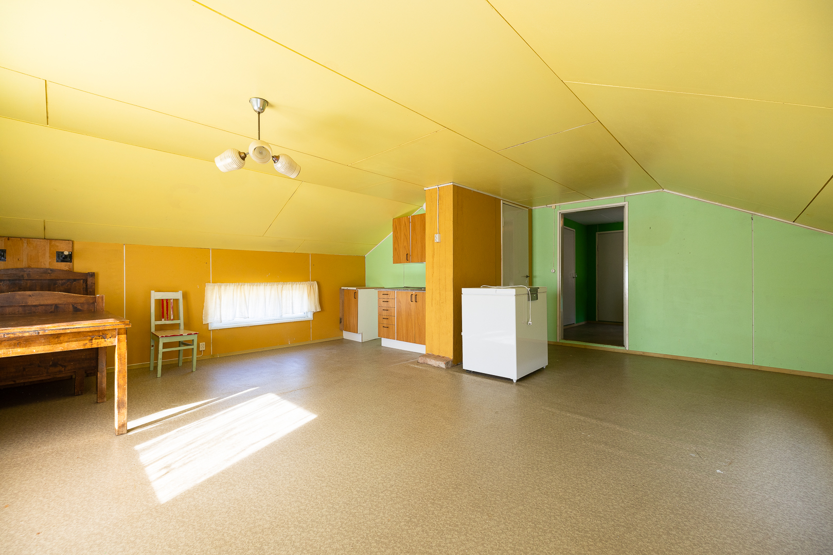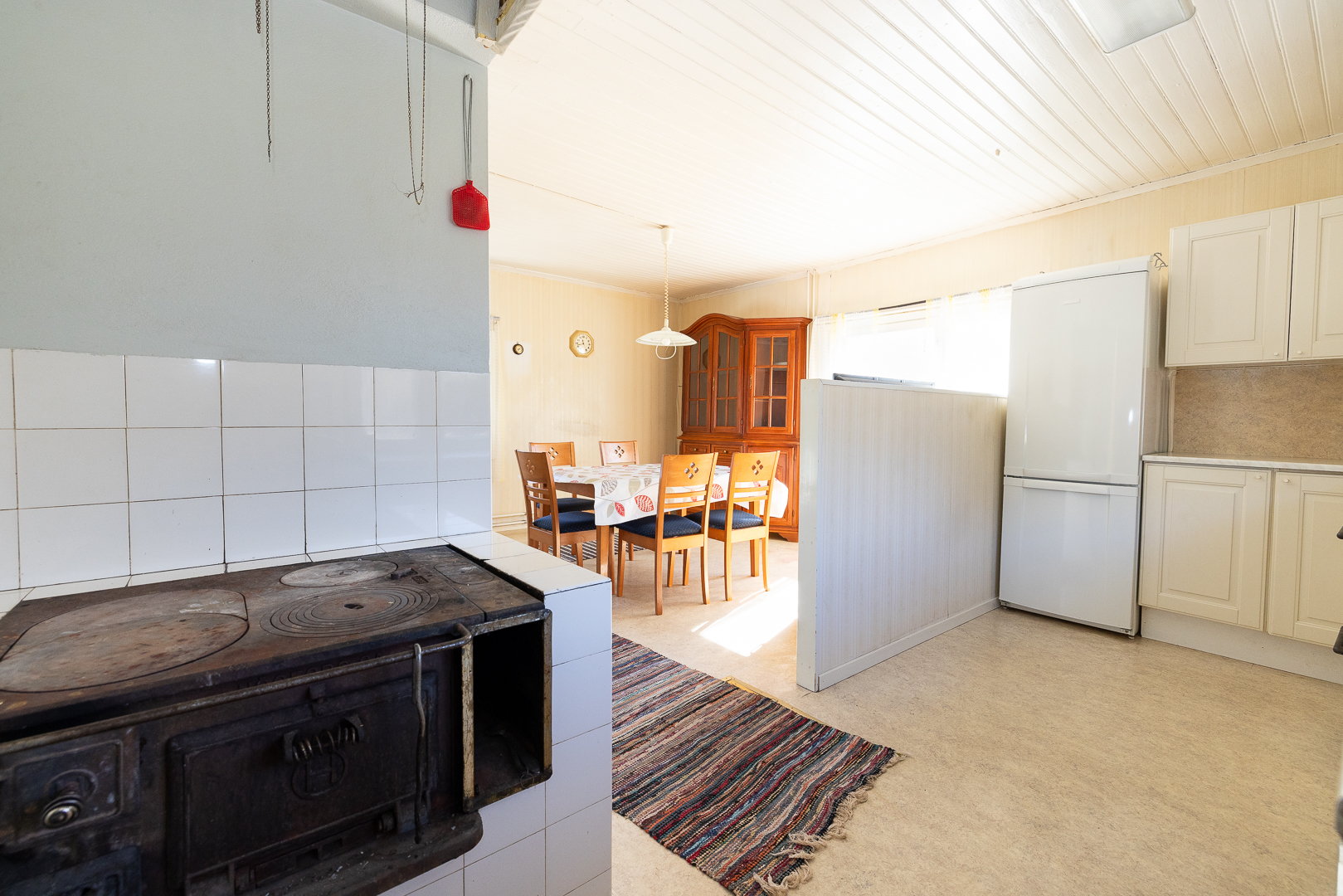 Planlösningen är traditionell där nedervåningen omfattar ett rum samt stugkök. Övervåningen rymmer tre rum som kan anpassas efter behov. Bostadsytan uppgår till cirka 120 m², den totala våningsytan till cirka 150 m² och byggytan är 84 m². Bostaden är i behov av renovering och säljs som renoveringsobjekt.